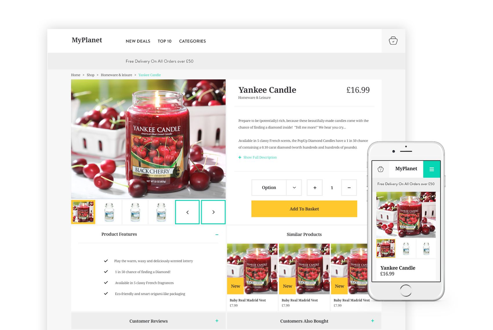 The homepage for this design is similar to an all products page, with all of their most recent product showed as square thumbnails. For the mobile, we simple stacked these on top of each other, with user experience I had to put a limit to how many products were shown on the homepage, it would'nt be good to put 40+ products on one mobile page like the desktop, this would have the user scrolling for quite sometime which is never good.